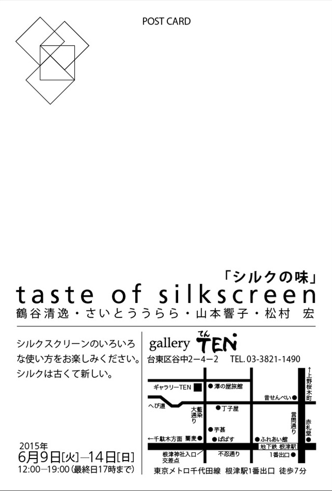 6月 9日(火)ー14日(日) taste of silkscreen「シルクの味」鶴谷清逸・さいとううらら・山本響子・松村宏